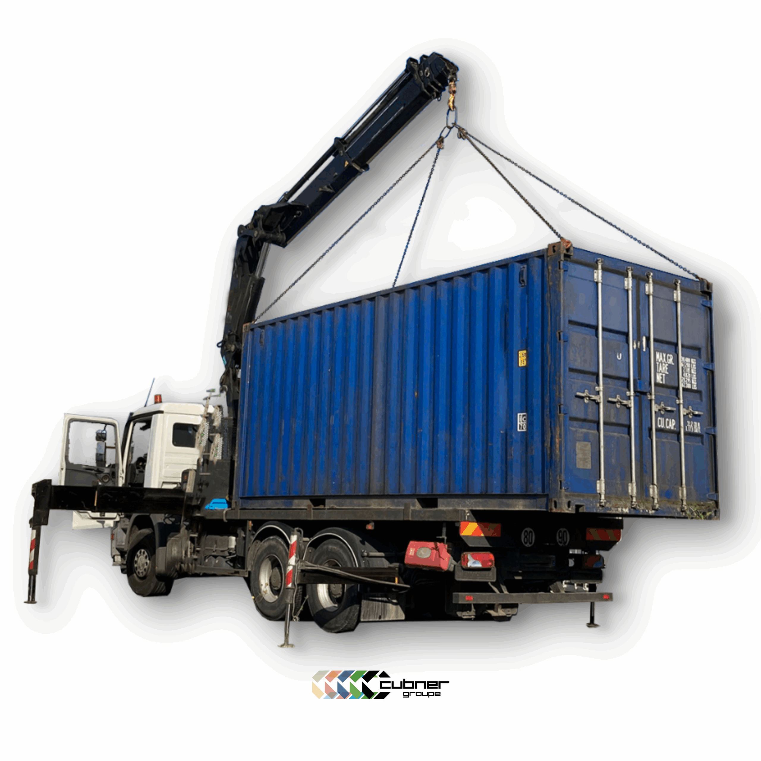 Nous livrons nos containers en camion-grue partout en France. Vous avez toujours le choix, soit nous livrons et déchargeons, soit vous pouvez aussi vous en occuper.