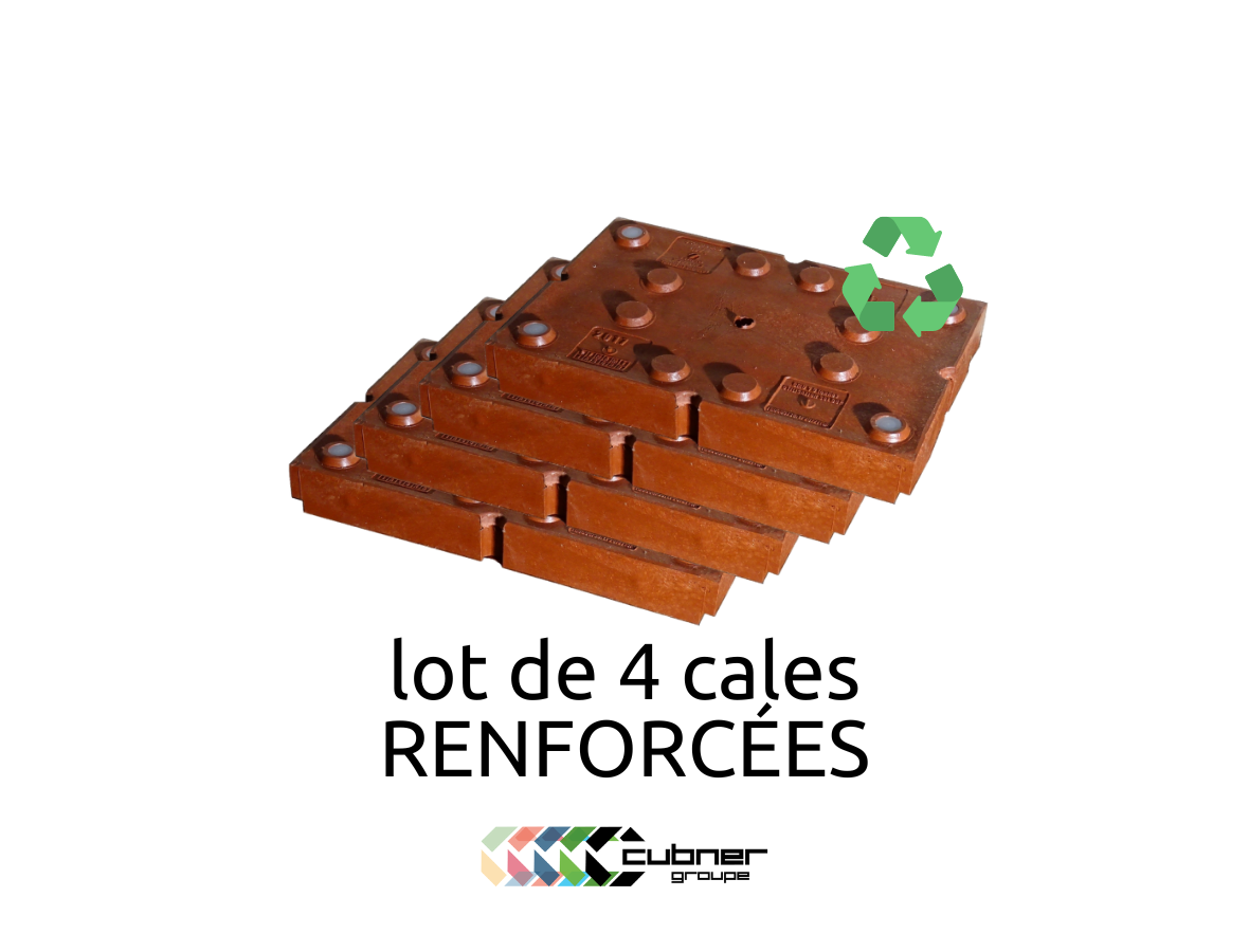 Afin de positionner au sol et de mettre à niveau votre conteneur, optez pour nos cales renforcées. Nos cales pour conteneur son renforcé avec des tiges métalliques. S’utilise sur sol dur uniquement. Le coin ISO du conteneur se positionne au milieu de la cale et est centrée grâce aux ergots.