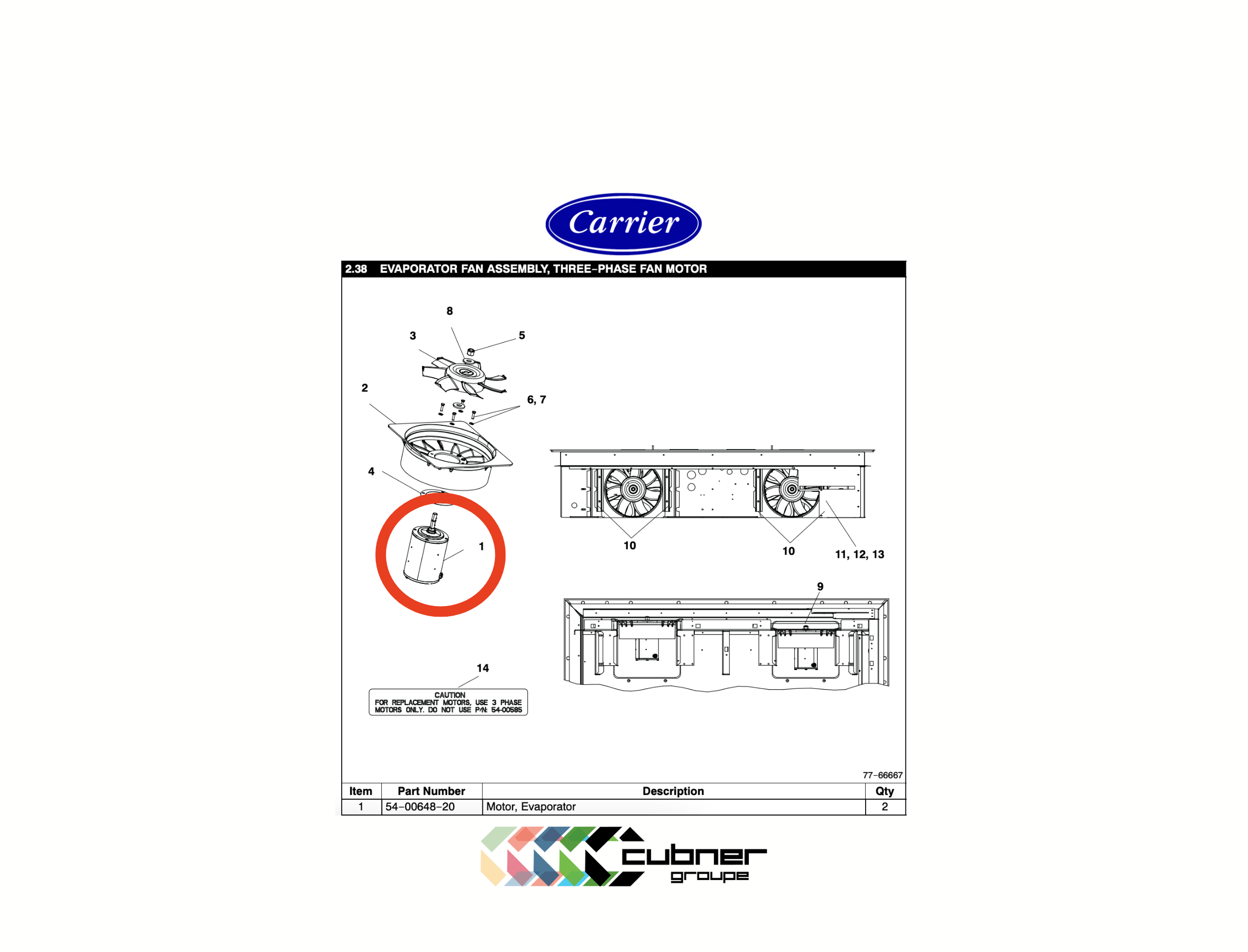 Moteur évaporateur reconditionné – CARRIER – REF 54-00648-20